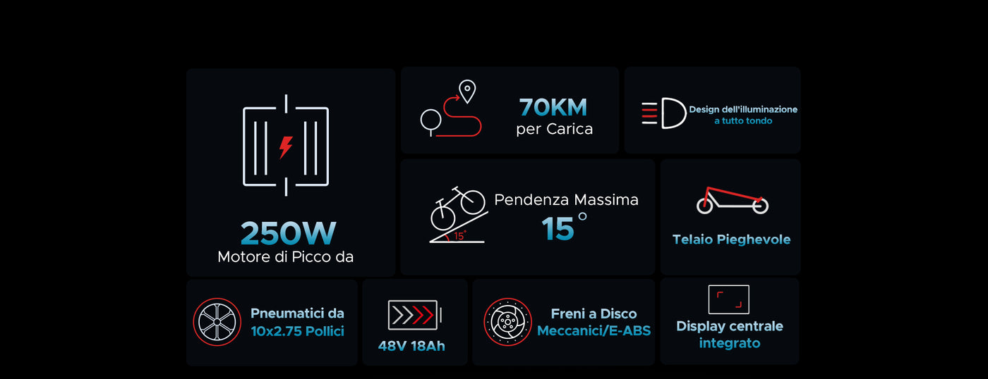 Monopattino Elettrico Pieghevole con Pneumatici Fat da 10", Autonomia 70 km